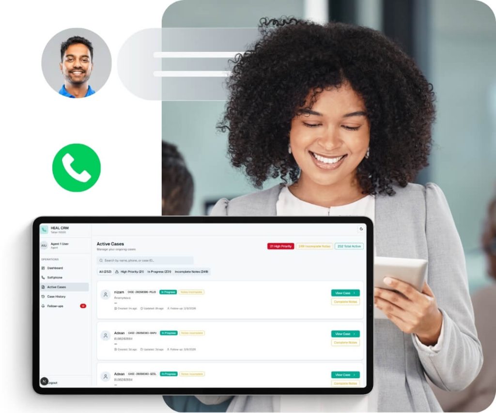 - Single dashboard for calls, cases, and notes